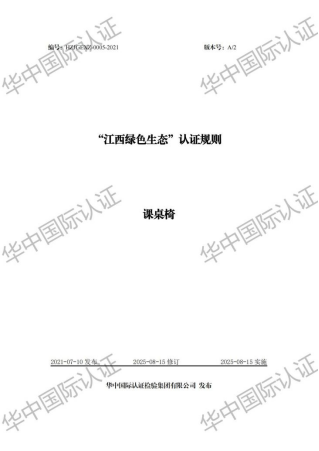 “江西绿色生态-课桌椅”是一款符合“江西绿色生态”品牌认证的课桌椅产品,其产品特点体现在环保、安全、质量与生态协同等方面。产品生产过程需符合绿色供应链管理、资源节约、环境保护等要求,强调生态协同与可持续发展。产品认证的意义在于通过“江西绿色生态”品牌认证,提升产品品质与市场竞争力,增强消费者信任,推动企业绿色转型与高质量发展。认证不仅有助于企业提升产品附加值,还能促进绿色消费,推动教育家具产业向绿色、环保方向发展。通过认证,企业可获得品牌公信力提升、市场认可度提高,助力企业开拓市场与提升品牌价值。“江西绿色生态-课桌椅”以绿色、环保、安全为核心,通过严格认证与标准,为消费者提供高品质、可持续的教育家具产品。
