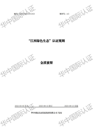 “江西绿色生态-金溪蜜梨”是江西省金溪县的特色水果,以其“香、甜、脆、嫩”的独特风味闻名,具有润肺消痰、止咳降火等功效。近年来,金溪蜜梨通过科技赋能、品种更新和品牌建设,推动产业高质量发展,成为当地农民增收的重要支柱产业。为“江西绿色生态-金溪蜜梨”做产品认证的意义在于,通过标准化生产、绿色认证和品牌建设,提升产品品质和市场竞争力,推动农业可持续发展。江西绿色生态品牌建设促进会发布的《江西绿色生态 金溪蜜梨》团体标准,明确了产品分级、评价和认证要求,为产品提供技术支撑和品牌价值。通过“江西绿色生态”品牌认证,金溪蜜梨可获得双重品牌权益,进一步提升产品附加值和市场认可度。