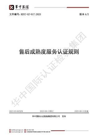 (2) CTS HZJSGF-0002-2023《售后服务认证技术规范》。