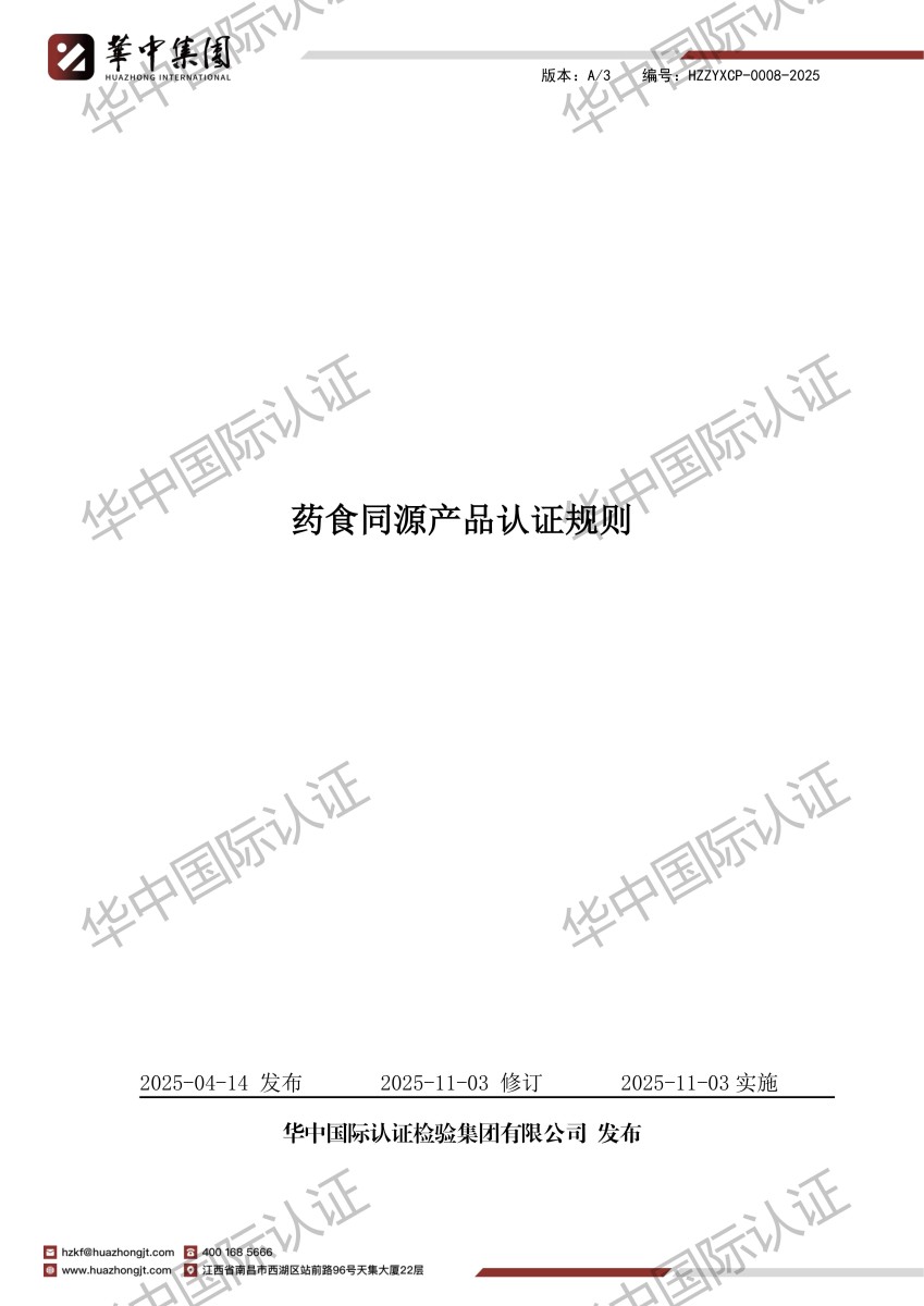 CTS HZJSGF-0008-2025 药食同源产品认证技术规范